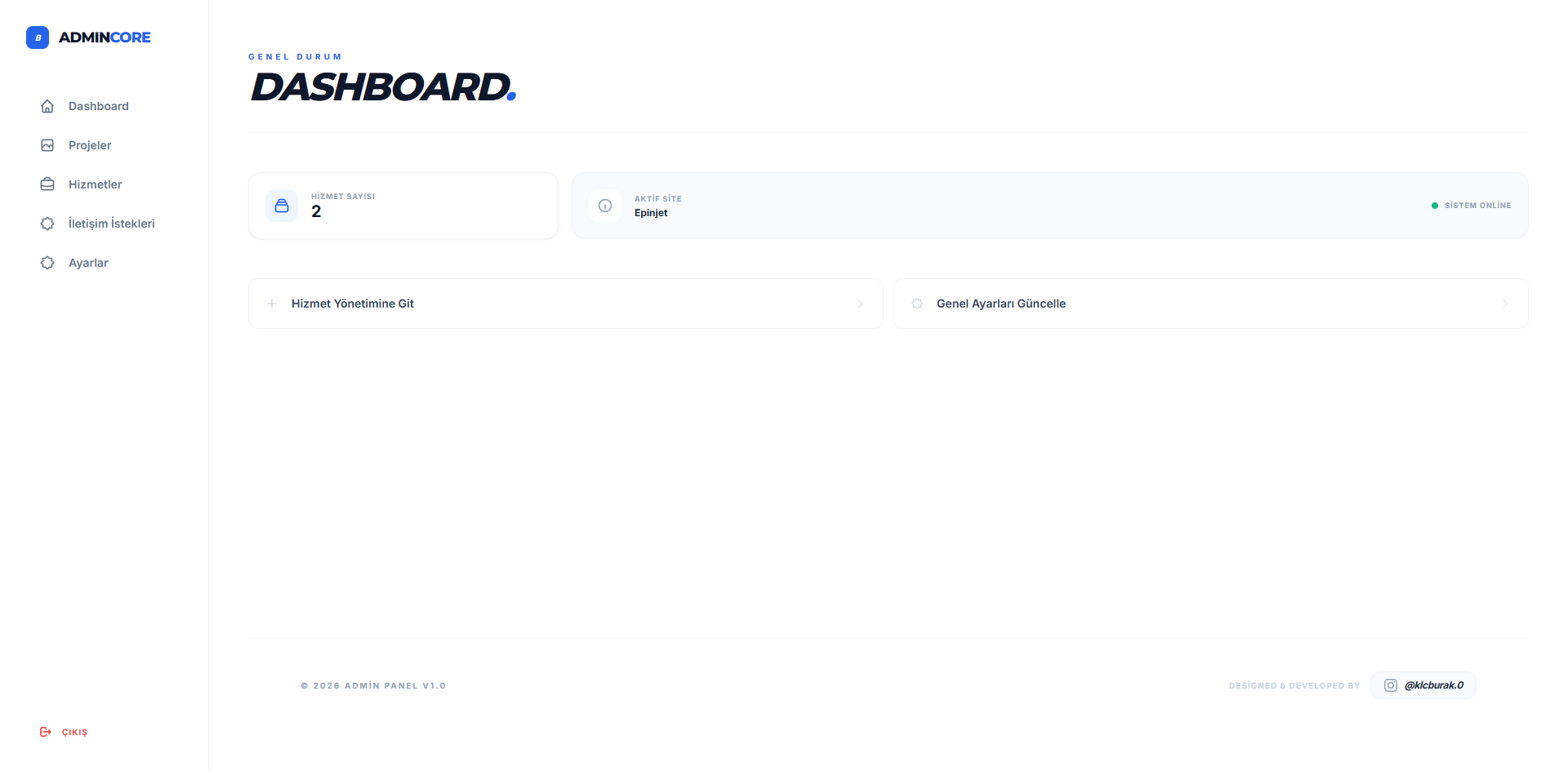 Gelişmiş Yönetim Paneli: Kod bilginiz olmasa dahi her şeyi (Hero görseli, SEO ayarları, Hizmetler, Projeler) panelden tek tıkla yönetin.