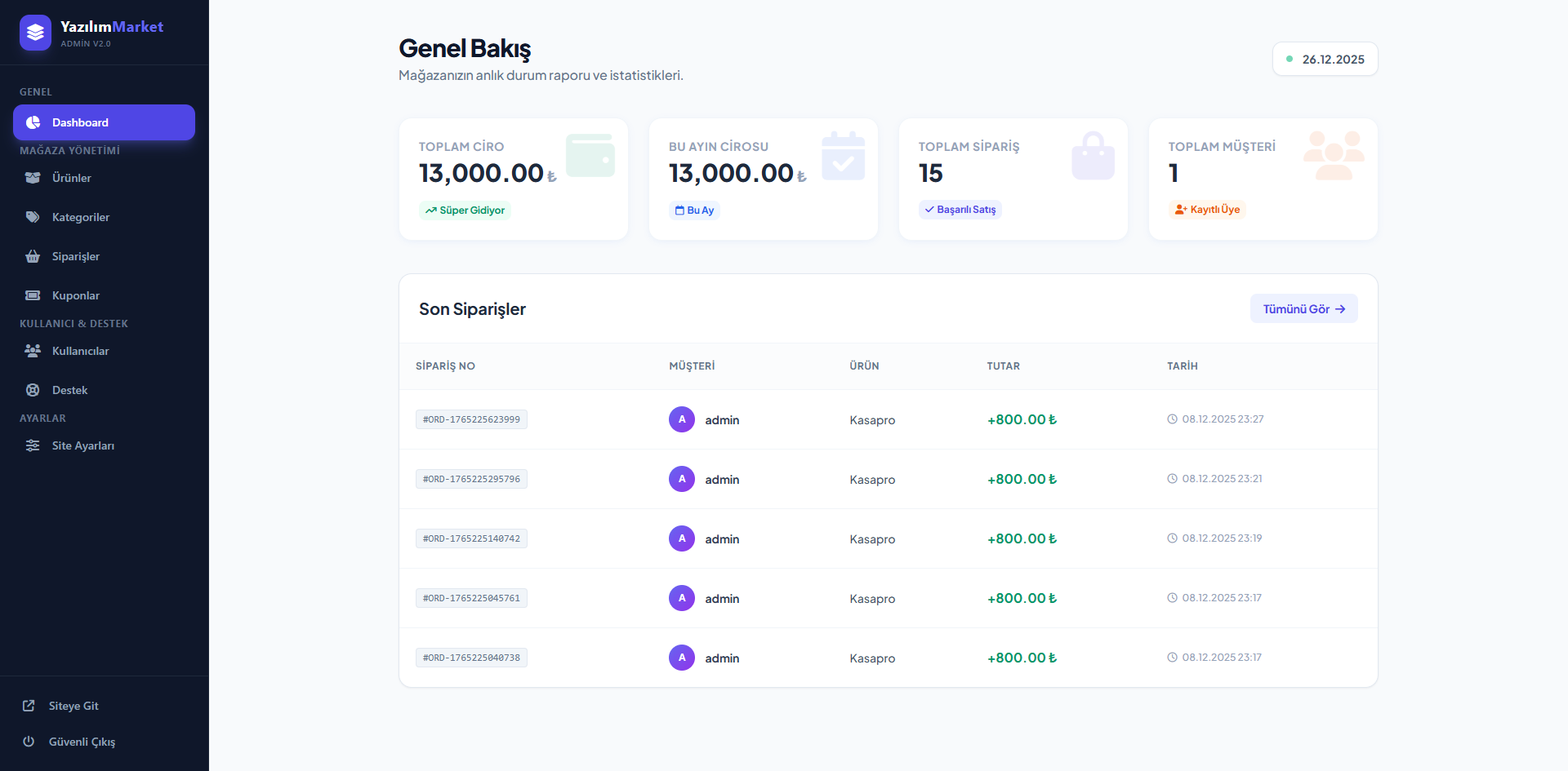 Dijital ürün satışını en basit ve etkili hale getiren bu script, karmaşık sistemlerle vakit kaybetmek istemeyen geliştiriciler için hazırlandı. Temiz kod yapısı ve modern tasarımıyla ürünlerini saniyeler içinde yayına almanı sağlar.
