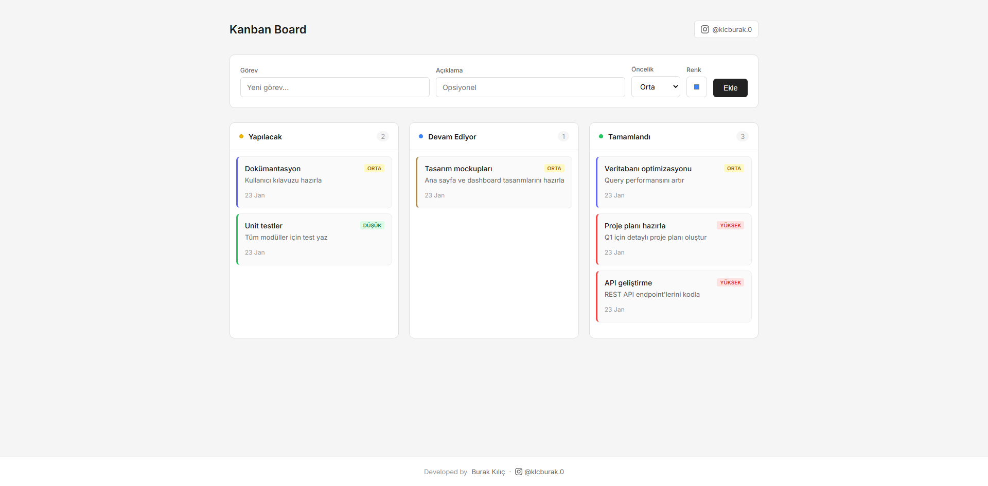 Modern ve kullanıcı dostu bir Kanban tarzı görev yönetim uygulaması.