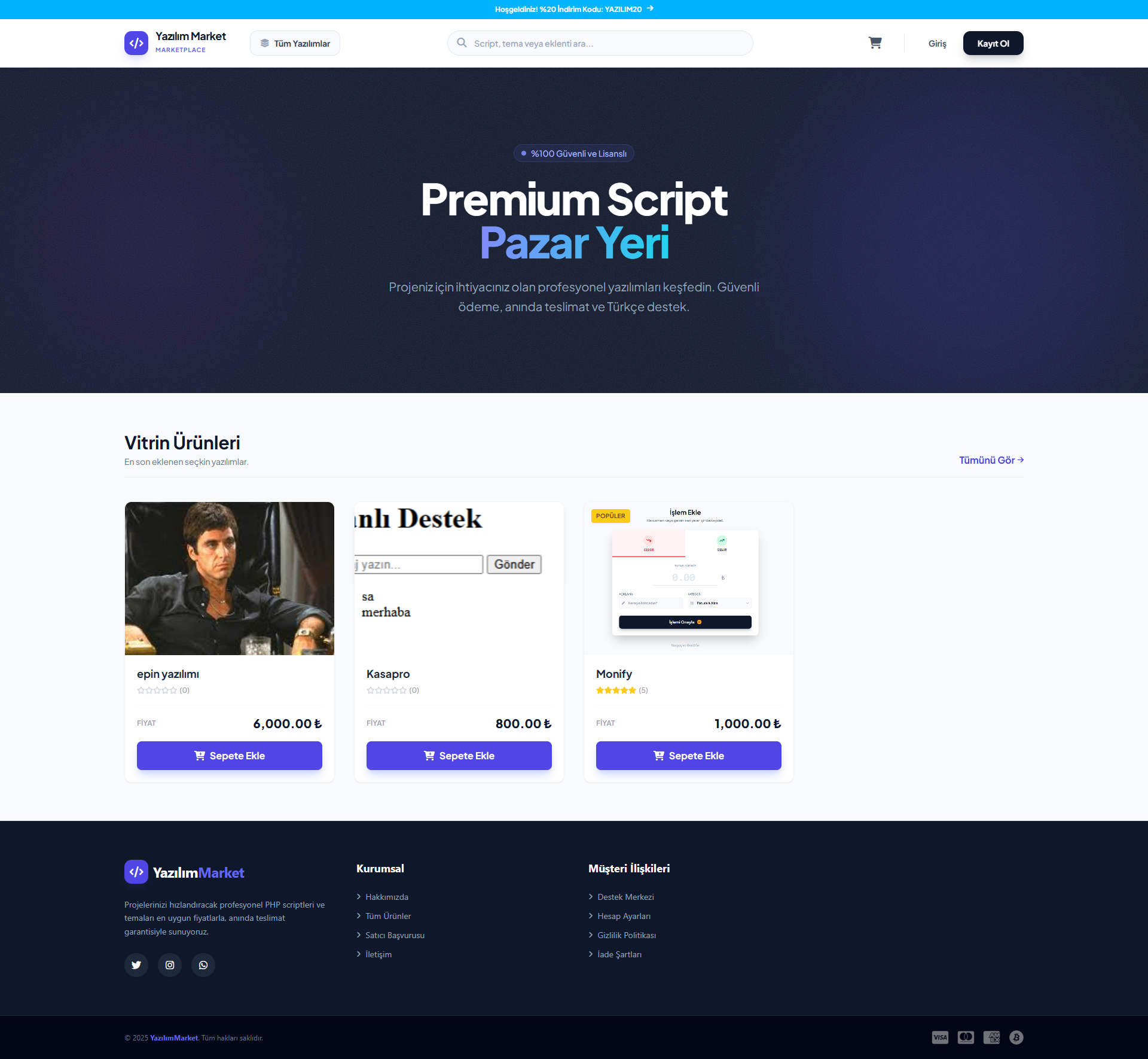 Dijital ürün satışını en basit ve etkili hale getiren bu script, karmaşık sistemlerle vakit kaybetmek istemeyen geliştiriciler için hazırlandı. Temiz kod yapısı ve modern tasarımıyla ürünlerini saniyeler içinde yayına almanı sağlar.